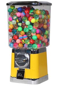 Можно продавать: жевательную резинку диаметром от 20 мм до 27 мм, мячи-прыгуны 25-32 мм, игрушки 28-35 мм и одноразовые бахилы в капсулах до 35 мм, а также порционный наполнитель (маленькую жевательную резинку, Джелли бин, конфеты типа "М&М"). Для продажи порционного наполнителя требуется смена дозатора.