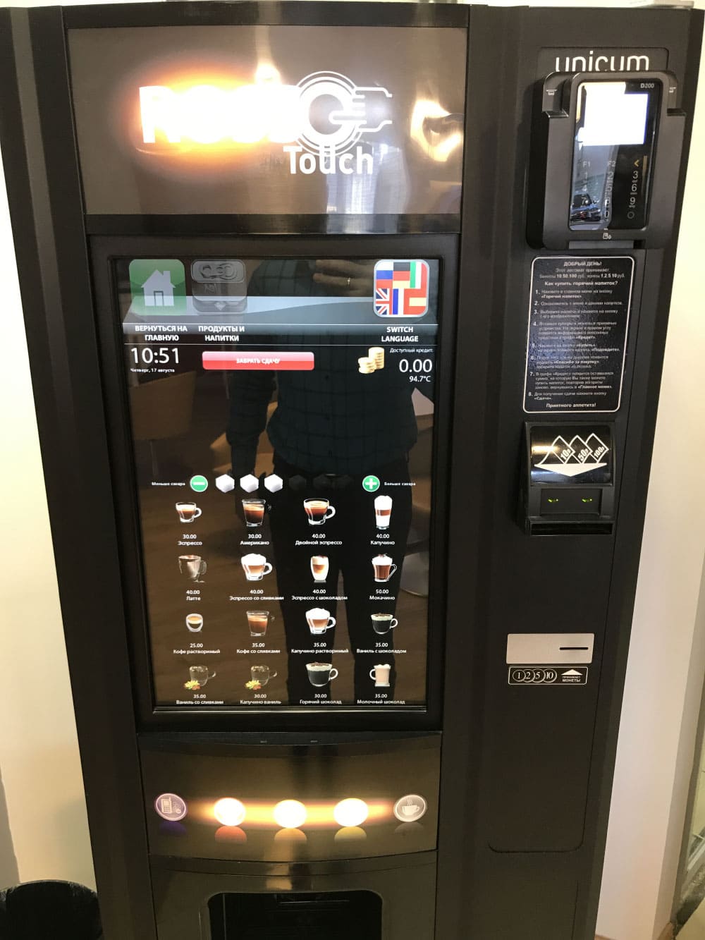 Кроме того замечено, что при установке модуля безналичной оплаты повышается средний размер покупки, так как клиенты не ограничены, суммой наличных средств. Торговые автоматы обычно принимают купюры номиналом не выше 100 рублей. Это связанно с проблемой сдачи — покупка кофе за 40 рублей, купюрой в 500, не приемлема для торгового автомата. Может, конечно, в тубах монетника и найдется 460 рублей на сдачу — но клиент получит их «железом», а следующий клиент, напиток приобрести не сможет, так как в аппарате не будет сдачи. Поэтому, хоть автоматы и принимают купюры номиналом в 500 рублей, операторы обычно отключают прием таких купюр.
